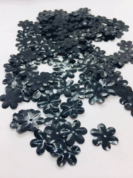 เลื่อมดอกไม้กลีบมน6กลีบ ขนาด 15 มิล สีดำ